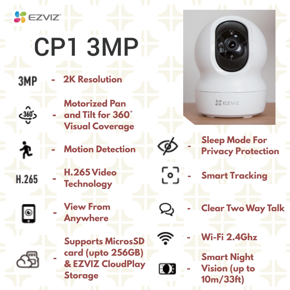 EZVIZ CP1 Pro Smart Security Home WiFi Camera Features: