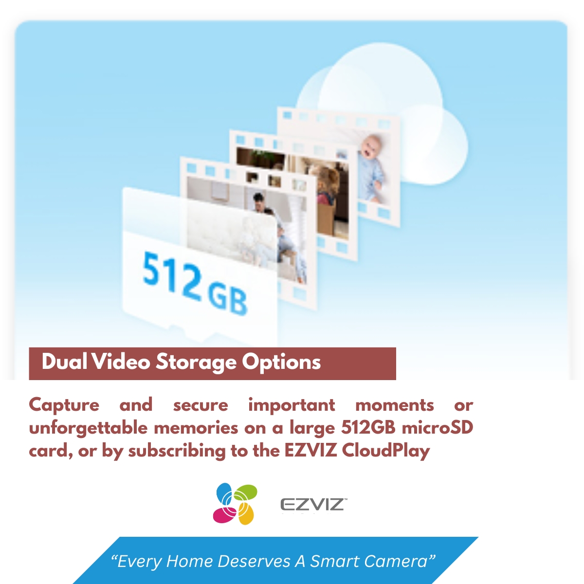 With two different storage options, you can choose where to save your recordings. Most important the EZVIZ H1c camera can even save data in two locations at the same time for added backup in case the camera is damaged or your network goes down.