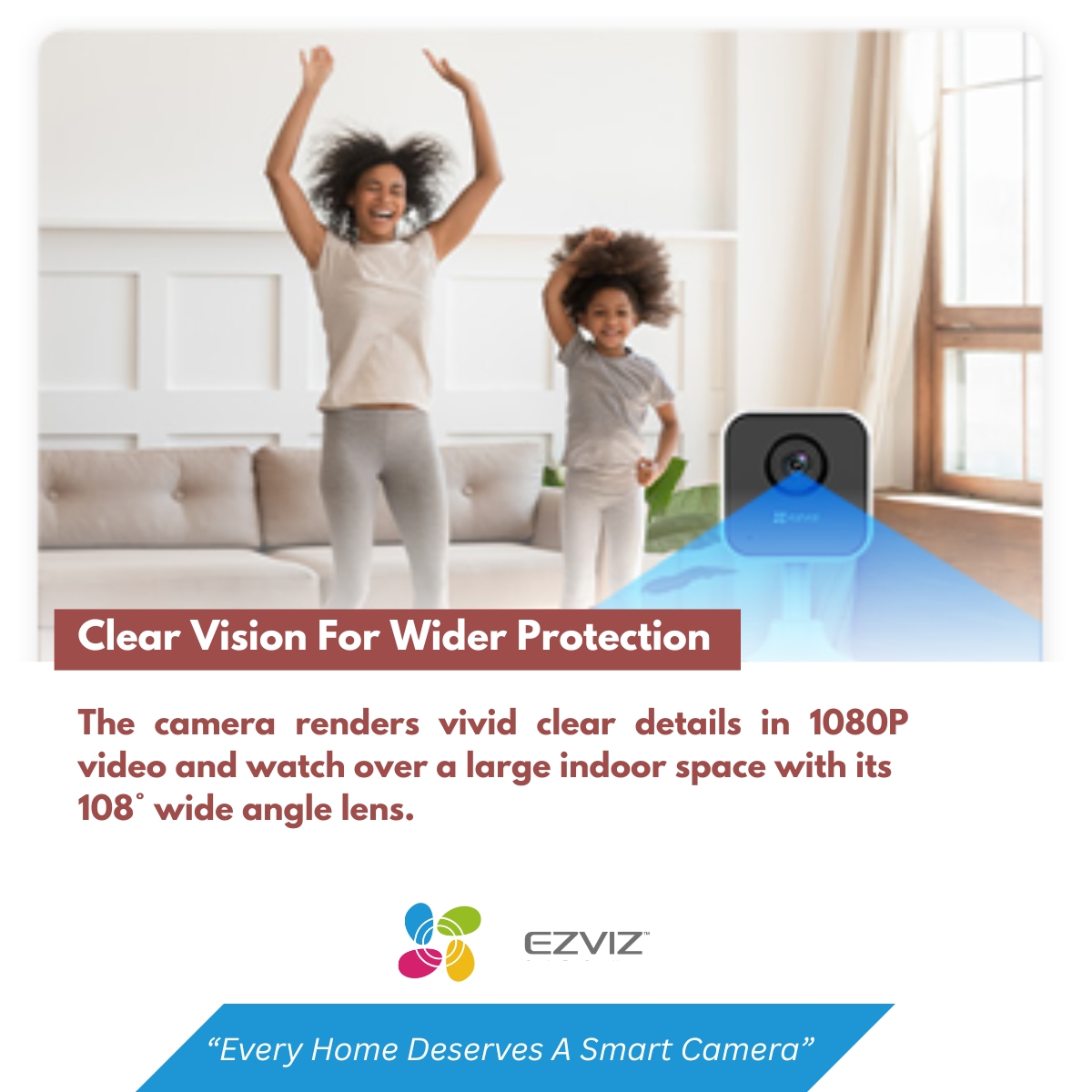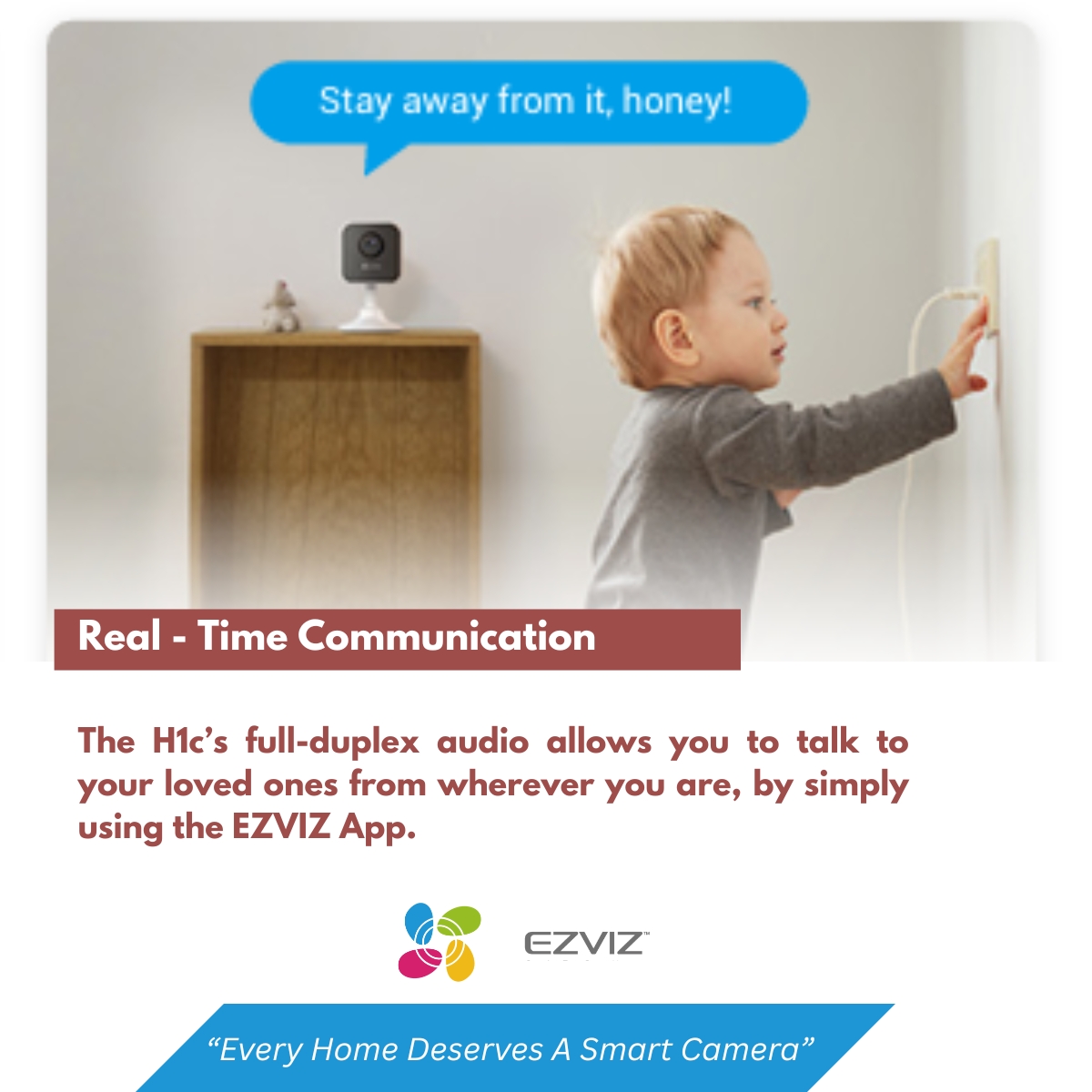 The EZVIZ H1c delivers Full HD 1080p video, and with a 108° ultra-wide-angle lens. As a result, it covers a wider range of space, so you can keep an eye on what’s valuable to you.