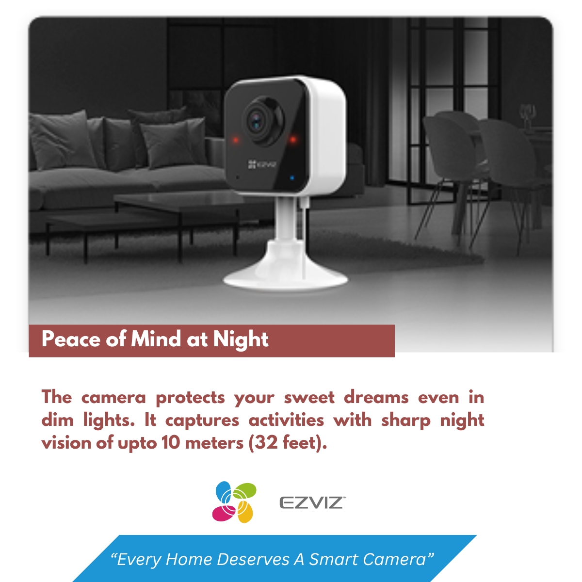 When it’s dark, the EZVIZ H1c automatically switches to night vision mode for around-the-clock Full HD video coverage, ensuring a night vision up to 10 meters.