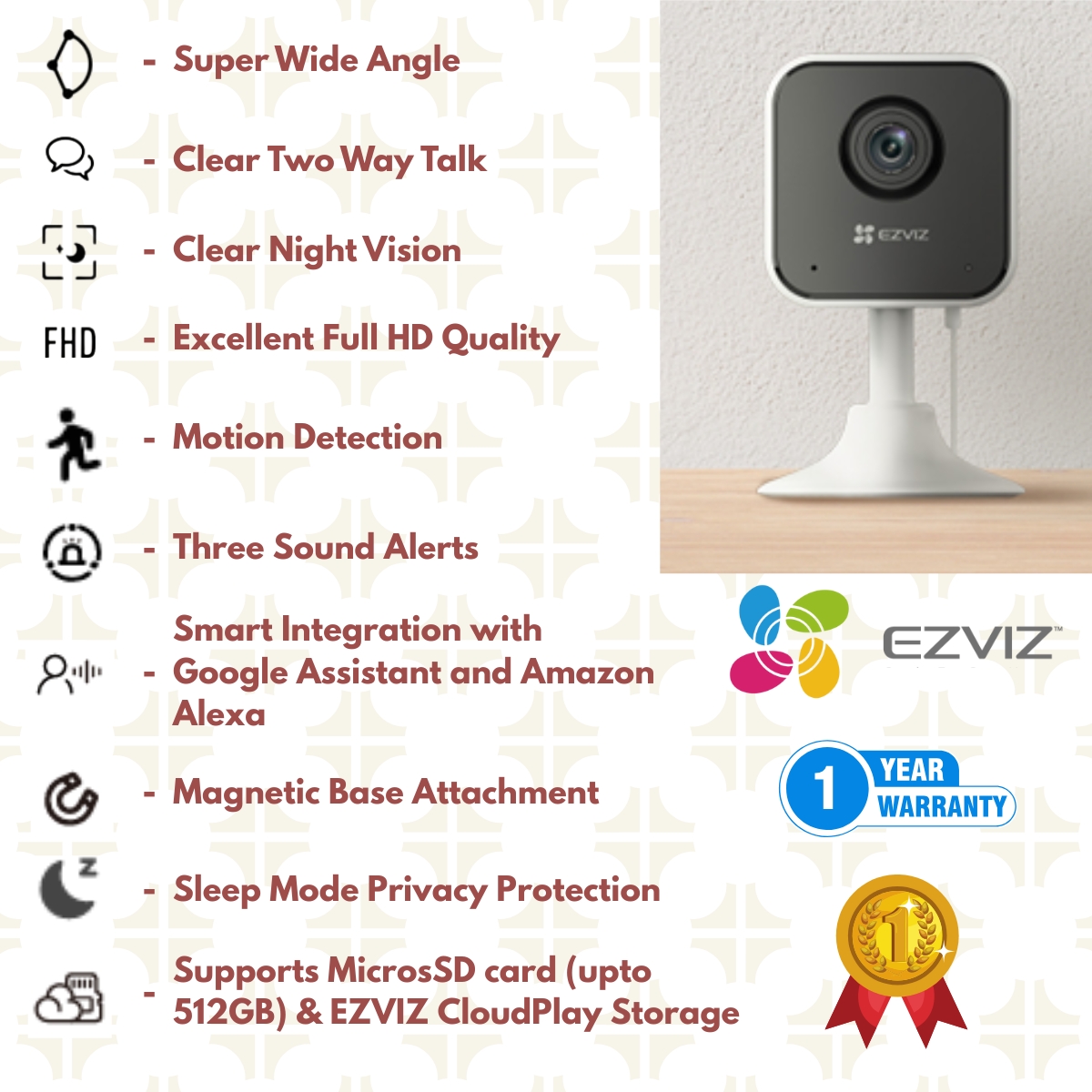 EZVIZ H1c SMART HOME WIFI SECURITY CAMERA FEATURES: