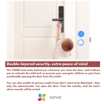 The Y2000 auto-locks behind you whenever you close the door, and it allows you to activate the child lock to prevent your energetic children or pets from accidentally opening the door from the inside.